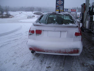It didnt snow at all the whole time we were up in vermont...then, on the way to the airport...what do you know...